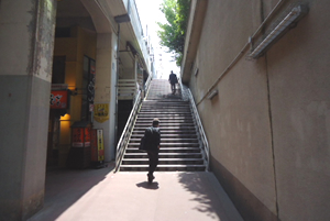 東口改札を出て、階段を上ります。