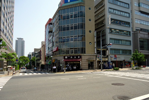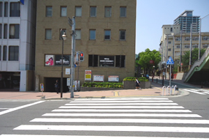 西3番出口の階段を上ると、交差点になっています。