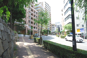 信号を渡って、西(花隈公園の方)へ歩きます。